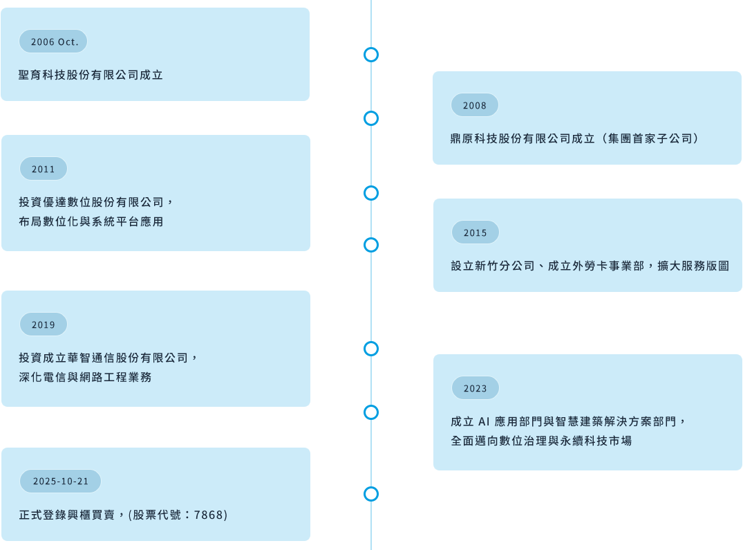 聖育科技股份有限公司成立於 2006 年,近年已拓展成集團化組織,